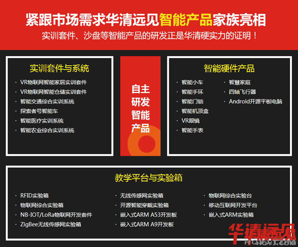 正如世界杯戰場的硝煙永不停歇一樣,華清遠見在智能產品研發上也不會停下腳步。從2004年成立至今,華清遠見自主研發實訓項目及實驗平臺60余套,應用于千余家合作院校及企業,其中20余例研發成果獲得國家專利,內容包括熱門實訓套件與系統、智能硬件產品及各種實驗箱。未來,華清遠見將繼續研發更多適用于市場、高校的實驗平臺,讓更多IT愛好者從中受益!