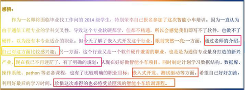 此次實訓同學們能將理論知識融會貫通,將所學知識應用在嵌入式智能小車開發上,激發了他們對嵌入式技術的研發熱情,為今后工作或者創業提供了好的方向和知識儲備,同時激勵學生們不斷提高自我專業素養,熟練掌握專業技能,為以后就業奠定堅實基礎,希望同學們可以越來越優秀。