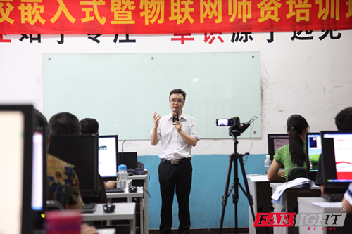 7月21日,外面淅淅瀝瀝下著小雨,陣陣涼風襲面而來,給這個炎熱的夏季帶來一絲涼爽感。也是在這樣一個清涼的日子里,2017暑期第16屆全國高校嵌入式暨物聯網師資培訓班在華清遠見教育集團順利開班了。