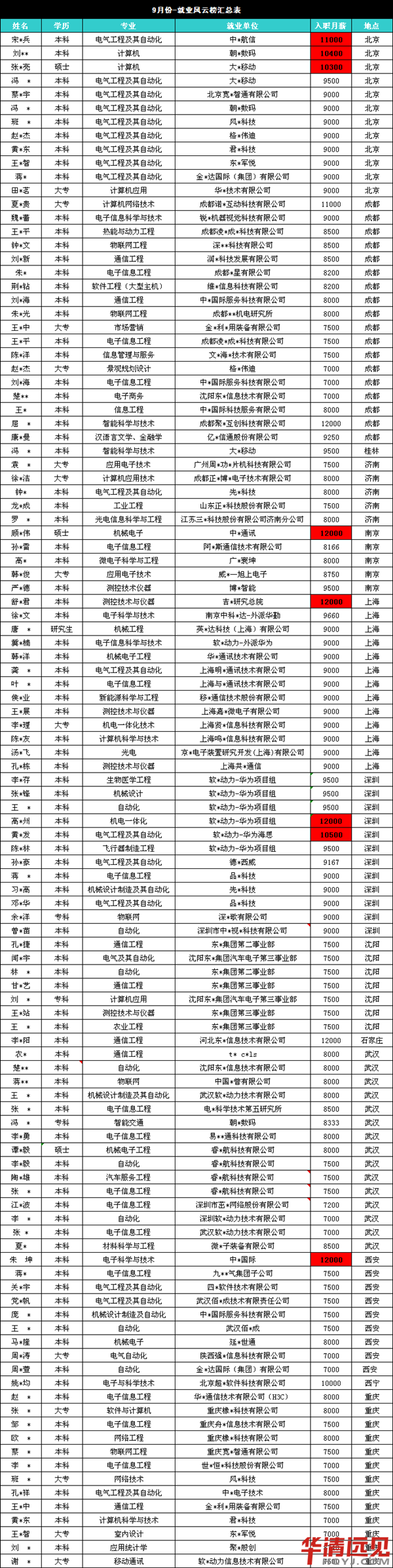 華清遠(yuǎn)見9月高薪出爐,剛畢業(yè)月薪就高達(dá)12000