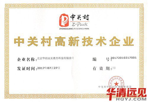 2017年7月27日和8月10日,華清遠見分別被評為“中關村高新技術企業”與“國家級高新技術企業”,這是華清成長之路上的又一里程碑,證明企業由此正式邁入高新技術企業的行列。