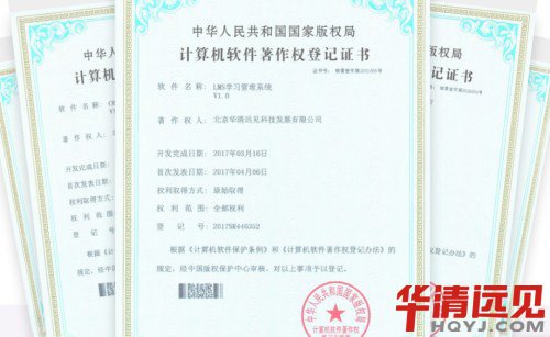 華清遠見憑借自身的硬實力(研發技術、教學實力、業務范圍)成功榮獲此證書,有效保障了教學、研發、出版等著作權不被侵犯。