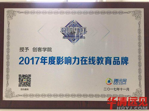NO.9榮譽根本停不下來——華清遠見榮獲騰訊“回響中國”2017年度影響力教育品牌大獎