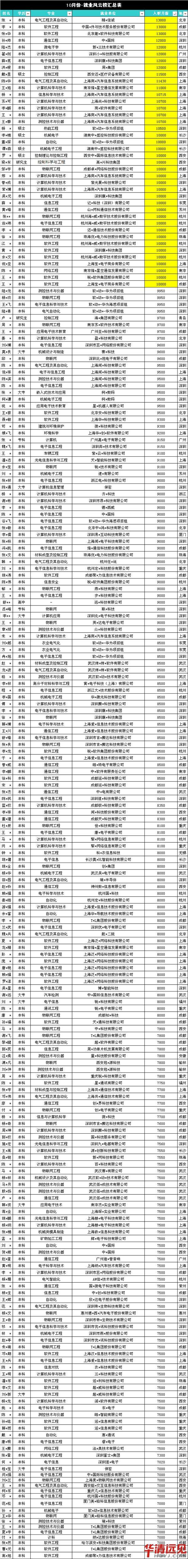 華清遠見10月高薪風云榜 入職月薪高達13000元!