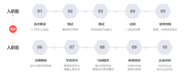 無(wú)規(guī)矩不成方圓,華清遠(yuǎn)見(jiàn)10%的教師錄取通過(guò)率,保證教學(xué)高質(zhì)量。不僅是入職前,要有技術(shù)、教學(xué)方面的考核,在入職后,也有一系列教學(xué)團(tuán)隊(duì)管理的實(shí)戰(zhàn)提升、內(nèi)部外部的考評(píng)策略、團(tuán)隊(duì)內(nèi)的互相學(xué)習(xí)等。在華清遠(yuǎn)見(jiàn),講師不僅僅代表著自己,更代表著華清遠(yuǎn)見(jiàn)。集團(tuán)統(tǒng)一的師資培養(yǎng)體系及教學(xué)保障體系,確保體系內(nèi)的每一位老師,都符合華清遠(yuǎn)見(jiàn)的師資要求標(biāo)準(zhǔn),從而為華清遠(yuǎn)見(jiàn)全國(guó)學(xué)員提供優(yōu)質(zhì)的教學(xué)服務(wù)。嚴(yán)格的教師管理制度正是保證教學(xué)質(zhì)量根本所在,他們教學(xué)經(jīng)驗(yàn)豐富,學(xué)員好評(píng)率達(dá)到98%,他們是華清的支柱與驕傲~