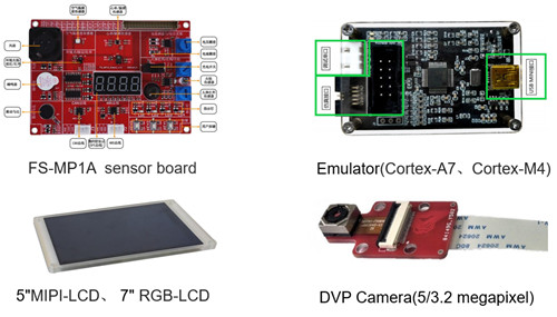 FS-MP1A開發板傳感板、仿真器、屏幕、攝像頭等配件