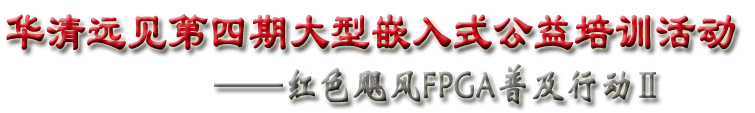繼第一期<紅色颶風FPGA普及行動>成功舉辦后,華清遠見將于近期推出第四期大型嵌入式公益培訓活動<紅色颶風FPGA普及行動Ⅱ>,以滿足更多FPGA初學者的學習愿望,期待您的繼續關注!