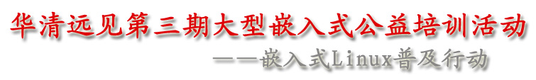 嵌入式公益培訓(xùn)活動(dòng)是華清遠(yuǎn)見嵌入式普及推廣活動(dòng)之一,主要面向嵌入式初學(xué)者。此次“嵌入式Linux普及行動(dòng)”由華清遠(yuǎn)見及其旗下品牌“嵌入式學(xué)院”聯(lián)合推出,是繼“FPGA紅色颶風(fēng)普及行動(dòng)”和“WinCE普及行動(dòng)”之后華清遠(yuǎn)見推出的第三次大型嵌入式公益培訓(xùn)活動(dòng)。
