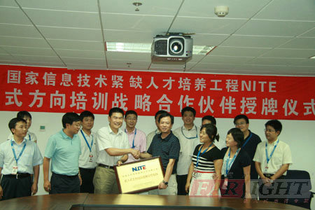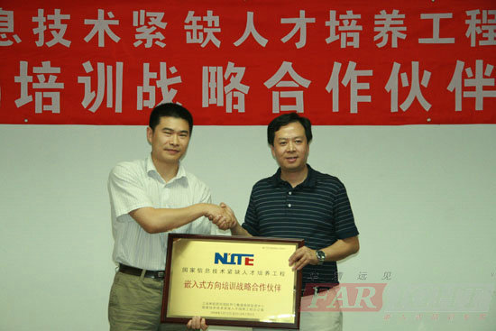 2009年7月31日,華清遠(yuǎn)見嵌入式培訓(xùn)中心與工業(yè)和信息化部軟件與集成電路促進(jìn)中心(簡稱CSIP)簽署了合作協(xié)議,并舉行了隆重的合作伙伴授牌儀式。工業(yè)和信息化部軟件與集成電路促進(jìn)中心副主任邱善勤博士、教育培訓(xùn)部吳宏雷主任、華清遠(yuǎn)見總裁季久峰及相關(guān)負(fù)責(zé)人出席了此次授牌儀式。自此,華清遠(yuǎn)見正式成為信息技術(shù)緊缺人才培養(yǎng)工程(National Information Technology Education Project,簡稱NITE)培訓(xùn)戰(zhàn)略合作伙伴。憑借多年在嵌入式專業(yè)領(lǐng)域內(nèi)的卓越貢獻(xiàn)和權(quán)威地位,華清遠(yuǎn)見也成為了首家獲NITE授權(quán)的嵌入式方向培訓(xùn)機(jī)構(gòu)。