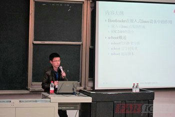 2011年10月29日,由華清遠見成都中心主辦,四川大學電子信息學院研究生協會協辦的“開源系統Linux及Android關鍵技術”專題講座在四川大學基礎教學樓C204成功舉行。本次講座由華清遠見成都中心三位高級講師主講,結合西南地區嵌入式企業人才需求,選取了目前廣受關注的開源嵌入式操作系統Linux以及Android兩個系統與參與者一起分享了三個熱點專題,活動當天吸引了眾多來自各大高校及企業的嵌入式愛好者前來參加,全場308個位置座無虛席。 本次講座分為三個專題:Bootloader在嵌入式系統的使用、Linux設備驅動中并發控制技術以及Android關鍵技術分析及入門技巧,分別由華清遠見成都中心王海寧老師、李安強老師、王光榮老師擔任主講人。王海寧老師圍繞嵌入式系統的基礎Bootloader展開主題內容,通過開源項目U-BOOT在ARM平臺下代碼框架的分析,給出U-BOOT在嵌入式系統的移植要點和注意事項。李安強老師為大家講述了在Linux設備驅動中的并發控制技術,在實際生產中有多個進程或多個線程通常要競爭資源,為了實現系統能夠安全的訪問共享資源、得到有效和正確的數據,如何實現系統對共享資源的互斥訪問。后王光榮老師針對目前在全球智能手機市場銷量排名第一的Android手機進行了精彩的講解,參與者們通過王老師的具體分析了解到了Android的關鍵技術以及Android的入門技巧。本次講座總共持續了4個半小時,主講老師精彩的演講讓在場所有嵌入式愛好者都受益匪淺。每個專題后的Q&A互動環節,主講老師精彩的解答迎來了臺下陣陣掌聲。講座活動的場間休息時間雖然短暫,大家卻不愿意錯失向這些經驗豐富的專家們請教的機會,將老師們團團圍住,詢問各種學習、工作中遇到的技術問題。講座后的抽獎環節,華清遠見出版的書籍、ATMEL以及ARM Cortex M3開發板等豐厚的獎品吸引了參與者們強烈的關注,把整個活動推向了一個新的高潮。 場外展臺上華清遠見自主研發的實驗平臺以及公開出版的嵌入式系列書籍也吸引了眾多嵌入式愛好者的目光,其中引人注目的是華清遠見新研發的FS_S5PC100開發平臺,FS_S5PC100開發平臺采用三星公司先進的基于Cortex-A8內核的S5PC100處理器設計而成。此平臺主要應用于華清遠見嵌入式系統教學,以適應Android、嵌入式Linux、Wince等智能操作系統的發展及市場需求。華清遠見成都中心陶校長在展示臺前針對FS_S5PC100開發平臺的優勢以及豐富的資源為大家做精彩的演示,整個展臺被嵌入式愛好者們團團圍住,贊嘆聲此起彼伏。Cortex系列處理器是未來ARM公司主打產品線,均采用新的ARMv7架構,華清遠見作為ARM重要的人才培訓合作伙伴,此次將課程全面升級到Cortex平臺,既是行業發展需要,也代表著ARM工程師未來學習方向。作為嵌入式培訓行業的領頭羊,華清遠見此次硬件平臺全面升級也預示著,嵌入式培訓行業從此進入新的階段:Cortex-A8時代已經來臨了。 隨著物聯網時代的到來,嵌入式也得到了社會各界越來越多的關注,華清遠見作為的嵌入式人才培養服務機構,一直致力于嵌入式的推廣與普及,本次講座讓越來越多的企業和嵌入式愛好者們了解到華清遠見雄厚的師資力量以及華清遠見堅定的目標。“專業始于專注,卓識源于遠見”,華清遠見成都中心將一如既往地專注于西南地區嵌入式技術的推廣和普及,為嵌入式行業持續、穩定地發展盡一份力! 活動照片: