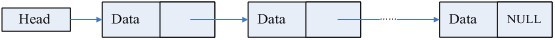 在用C語言實現時,首先說明一個結構類型,在這個結構類型中包含一個(或多個)信息成員以及一個指針成員如下所示: