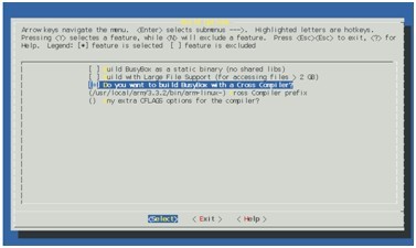 Linux支持多種文件系統,同樣,嵌入式Linux也支持多種文件系統。雖然在嵌入式系統中,由于資源受限的原因,它的文件系統和PC上的Linux的文件系統有較大的區別,但是,它們的總體架構是一樣的,都是采用目錄樹的結構。在嵌入式系統中常見的文件系統有cramfs、romfs、jffs、yaffs等,這里就以制作cramfs文件系統為例進行講解。cramfs文件系統是一種經過壓縮的、極為簡單的只讀文件系統,因此非常適合嵌入式系統。要注意的是,不同的文件系統都有相應的制作工具,但是其主要的原理和制作方法是類似的。 在嵌入式Linux中,busybox是構造文件系統常用的軟件工具包,它被非常形象地稱為嵌入式Linux系統中的“瑞士軍刀”,因為它將許多常用的Linux命令和工具結合到了一個單獨的可執行程序(busybox)中。雖然與相應的GNU工具比較,busybox所提供的功能和參數略少,但在比較小的系統(如啟動盤)或者嵌入式系統中已經足夠了。 busybox在設計上就充分考慮了硬件資源受限的特殊工作環境。它采用一種很巧妙的辦法減少自己的體積:所有的命令都通過“插件”的方式集中到一個可執行文件中,在實際應用過程中通過不同的符號鏈接來確定到底要執行哪個操作。例如,終生成的可執行文件為busybox,當為它建立一個符號鏈接ls時,就可以通過執行這個新命令實現列出目錄的功能。采用單一執行文件的方式大限度地共享了程序代碼,甚至連文件頭、內存中的程序控制塊等其他系統資源都共享了,對于資源比較緊張的系統來說,真是合適不過了。在busybox的編譯過程中,可以非常方便地加減它的“插件”,后的符號鏈接也可以由編譯系統自動生成。 下面用busybox構建FS2410開發板的cramfs文件系統。 (1)從busybox網站下載busybox源碼(本實例采用busybox-1.00)并解壓,接下來,根據實際需要進行busybox的配置。 $ tar jxvf busybox-1.00.tar.bz2 此時,需要設置與平臺相關的交叉編譯選項,操作步驟為:先選中“Build Options”項的“Do you want to build BusyBox with a Cross Complier?”選項,然后將“Cross Compiler prefix”設置為“/usr/local/arm/3.3.2/bin/arm-linux-”(這是在實驗主機中的交叉編譯器的安裝路徑),如圖1.7所示。 (2)編譯并安裝busybox。 $ make 其中,PREFIX用于指定安裝目錄,如果不設置該選項,則默認在當前目錄下創建_install目錄。創建的安裝目錄的內容如下: $ ls (3)由此可知,使用busybox軟件包所創建的文件系統還缺少很多東西。 (4)通過創建系統所需的目錄和文件來完善文件系統的內容。 $ mkdir mnt root var tmp proc boot etc lib (5)將所需的交叉編譯鏈接庫復制到lib目錄中,這些庫文件位于/usr/local/arm/3.3.2/lib下。在復制時應該注意采用打包后解包的方式,以保證符號鏈接的正確性和完整性。刪除所有目錄和靜態庫文件,并使用arm-linux-strip工具剝除庫文件中的調試段信息,從而減少庫的體積。 (6)創建一些重要文件。inittab是Linux啟動之后第一個被訪問的腳本文件。 # This is run first except when booting 建立init.d目錄,進入init.d目錄,建立rcS文件,文件內容如下: #!/bin/sh 建立/etc/profile文件: # /etc/profile 其中,profile用于設置shell的環境變量,shell啟動時會讀取/etc/profile文件來設置環境變量。以下是/etc/rc.local文件: #!/bin/sh fstab文件定義了文件系統的各個“掛接點”,需要與實際的系統相配合。 none /proc proc defaults 0 0 后要創建用戶和用戶組文件等其他文件,以上用busybox構造了文件系統的內容。 下面創建cramfs文件系統映像文件,制作cramfs映像文件需要用到的工具是mkcramfs。此時可以采用兩種方法,一種方法是使用我們所構建的文件系統(在目錄“/home/david/fs2410/cramfs”中),另一種方法是在已經做好的cramfs映像文件的基礎上進行適當的改動。下面的示例使用第二種方法,因為這個方法包含了第一種方法的所有步驟(假設已經做好的映像文件名為“fs2410.cramfs”)。 首先用mount命令將映像文件掛載到一個目錄下,打開該目錄并查看其內容。 $ mkdir cramfs 因為cramfs文件系統是只讀的,所以不能在這個掛載目錄下直接進行修改,因此需要將文件系統中的內容復制到另一個目錄中,具體操作如下所示: $ mkdir backup_cramfs 此時就像用busybox所構建的文件系統一樣,可以在backup_cramfs的cramfs子目錄中任意進行修改。例如,可以添加用戶自己的程序: $ cp ~/hello backup_cramfs/cramfs/ 在用戶的修改工作結束之后,用下面的命令可以創建cramfs映像文件: $ mkcramfs backup_cramfs/cramfs/ new.cramfs 接下來,就可以將新創建的new.cramfs映像文件燒入到開發板的相應位置了。 本文選自華清遠見嵌入式培訓教材《從實踐中學嵌入式Linux應用程序開發》 熱點鏈接: