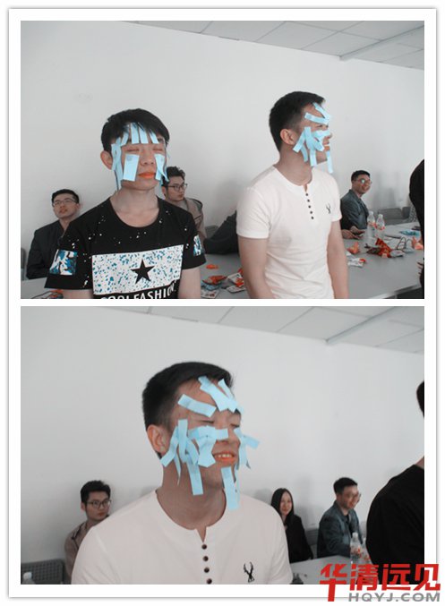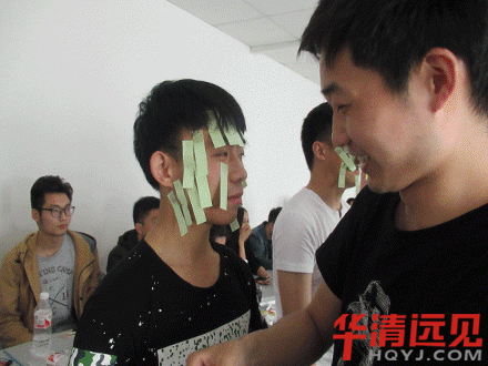吹紙條這個游戲設置的簡直慘絕人寰,首先要把紙條貼的滿臉都是,這個畫面讓華妹想起了林振英電影里鎮僵尸的符,再看看被貼的密密麻麻的同學滿臉無奈的表情,好笑又可愛呀!為大家點贊!大家的游戲精神真是棒棒噠!