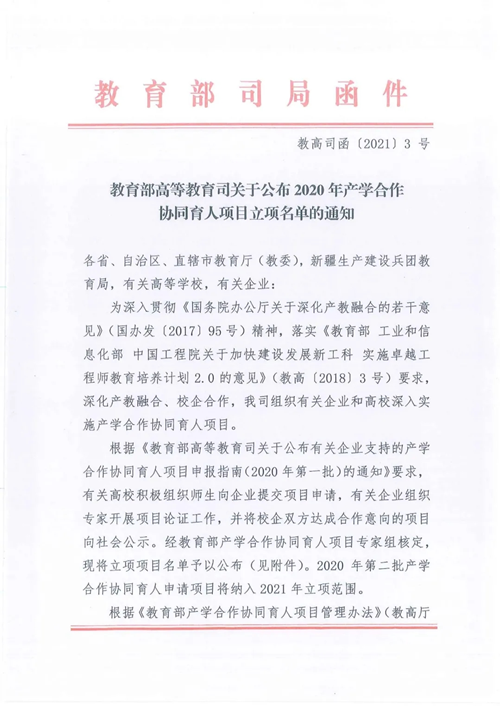 華清遠(yuǎn)見關(guān)于教育部高教司2020年第一批產(chǎn)學(xué)合作協(xié)同育人項目獲批立項名單公布