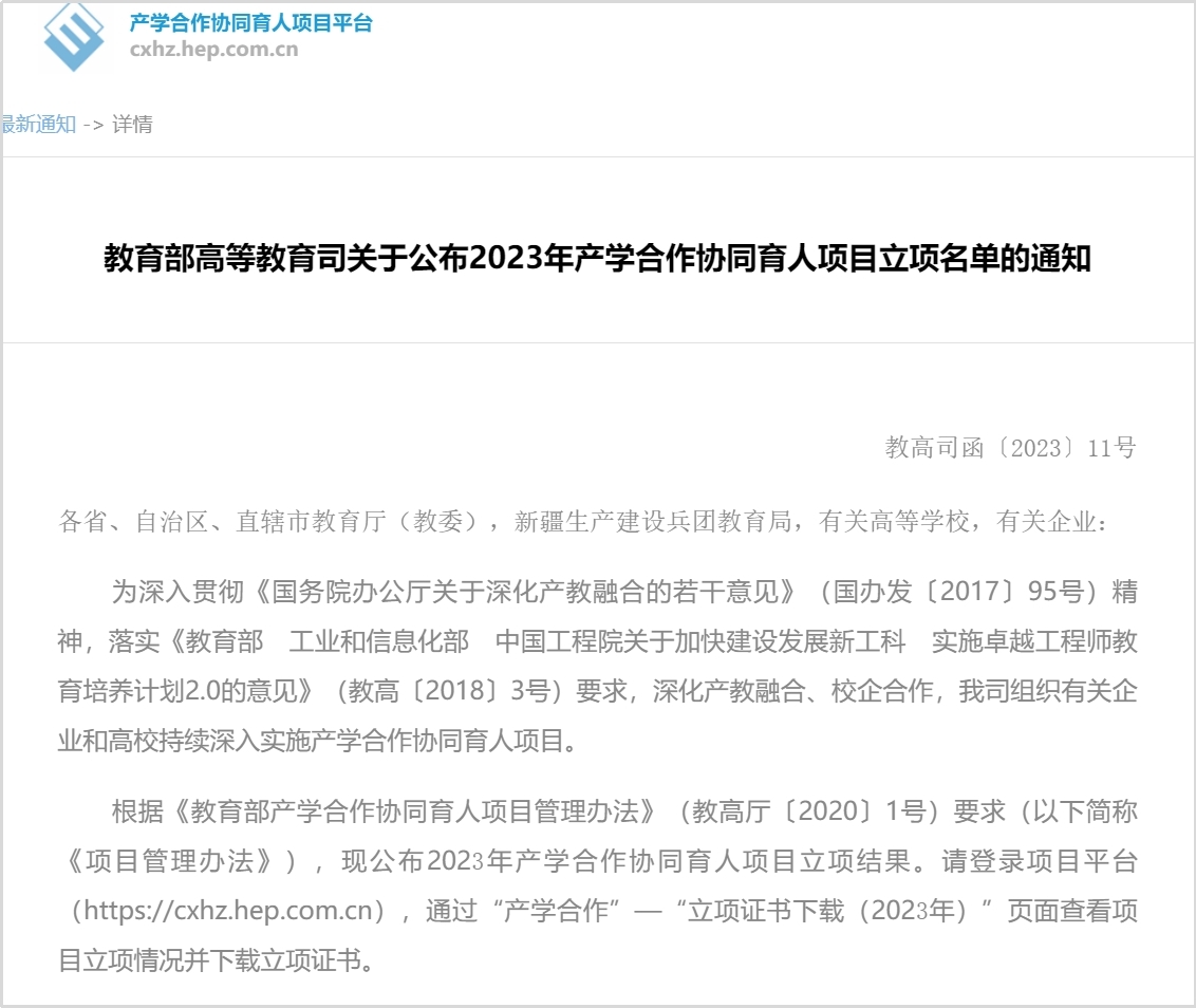 華清遠見關于教育部高教司2023年產學合作協同育人項目獲批立項名單公布