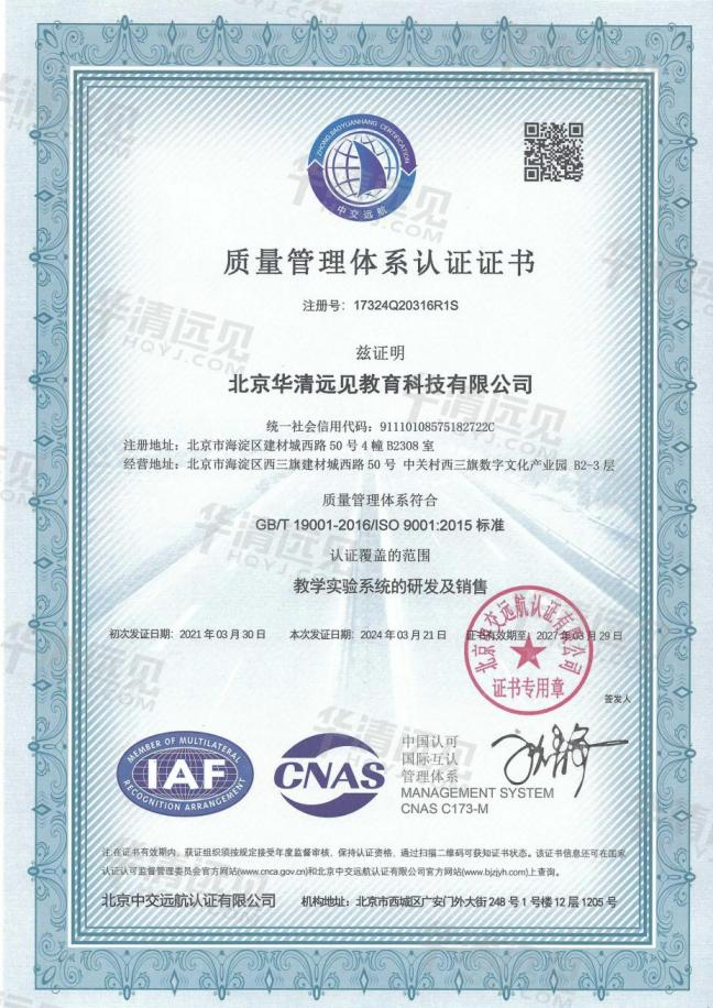 華清遠見連續9年獲ISO9001質量管理體系認證,匠心做產品,用心做教育