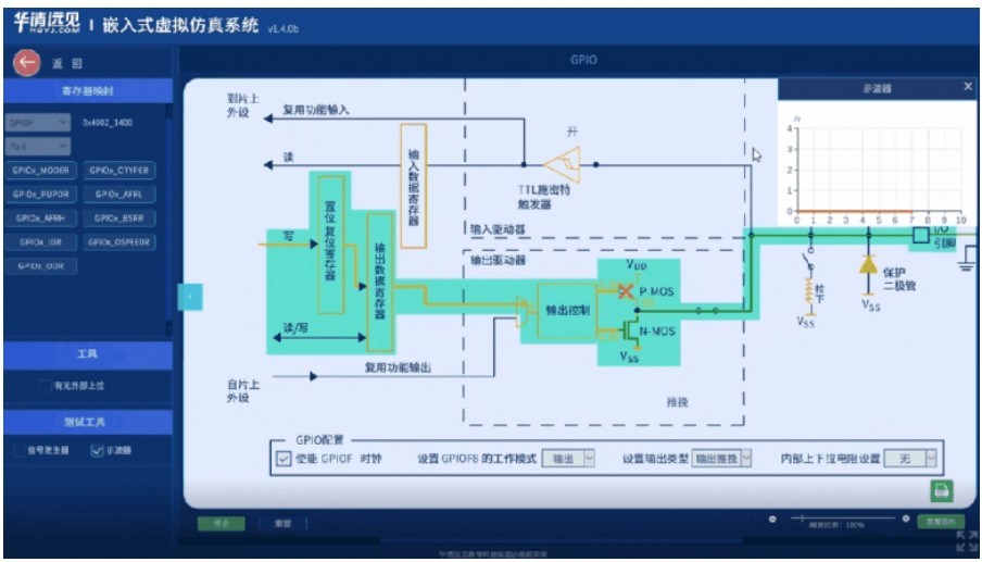 華清遠(yuǎn)見元宇宙嵌入式虛擬仿真在線教學(xué)平臺(tái),具有豐富完善的平臺(tái)仿真功能,支持知識(shí)點(diǎn)項(xiàng)目管理、處理器內(nèi)核相關(guān)功能仿真、外設(shè)控制器仿真、原理圖應(yīng)用仿真、PCB各層線路仿真、3D電路板仿真、3D場景仿真、流程圖編程仿真、STM32CubeMXHAL庫源碼仿真;支持FreeRTOS、RT-Thread等RTOS;支持LVGL等UI,覆蓋整個(gè)嵌入式體系化教學(xué)。