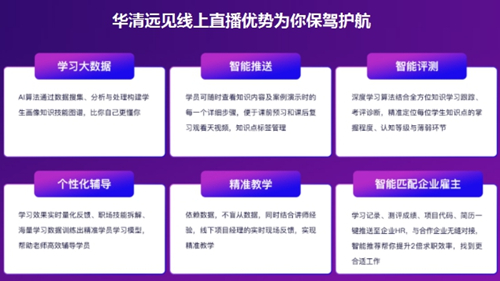 華清遠見旗下品牌創(chuàng)客學院是華清遠見重金打造的高端在線學習平臺,致力于培養(yǎng)實戰(zhàn)型高端IT人才。多年來從事線上直播教學、雙師教學,積累了豐富資源和寶貴經(jīng)驗,擁有完整的線上教學系統(tǒng)、全面的教學質(zhì)量管控體系。創(chuàng)客學院所有線上課程均為華清遠見全國12大校區(qū)專家級講師及業(yè)內(nèi)名師精心錄制,能夠為廣大學員提供1對1專屬學習方案、名師大屏授課模式體驗、4V1陪伴式學習、7*13在線實時答疑服務,將最高質(zhì)量的課程及最貼心的服務提供給所有學員。