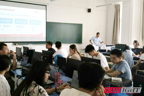 西安華清遠見校企合作負責人王老師給學生們分析了嵌入式、H5 、Java、安卓的行業前景,對比講了他們的應用和未來幾年的發展;接著講解了如何制作自己的人生規劃和制作規劃的重要性;最后分析了IT崗位和薪資等就業方面的問題。