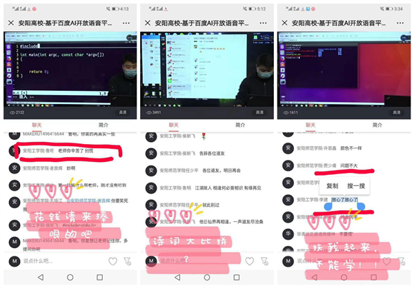 直播期間,可愛的學員們積極與老師互動答疑,課堂氛圍十分融洽。更有甚者,學員們因為一個話題進行了詩詞大比拼;還有的學員體諒老師講課辛苦讓老師晚餐“加個雞腿”吧~~