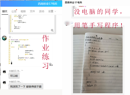 5月11日-23日,華清遠見成都中心的張老師為西南林業大學電子科學與技術2017級的學生開展了一場線上實習實訓活動,此次實訓的主要目的是為進一步鞏固學生專業理論知識,拓展學生視野,提高社會實踐能力。此次實訓項目是智能終端開發項目,授課老師是華清遠見成都中心張老師。實訓的方式采用QQ群進行學生管理、資料分發,用華清遠見自主開發的創客學院平臺直播,完成實訓項目。