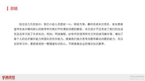 雖然實訓時間有限,但相信同學們也收獲頗豐。希望大家在接下來的學習與生活中,也能繼續保持激昂的學習熱情,不斷提升自己的就業競爭力!未來,華清遠見將繼續利用自身優勢和獨特資源為合作高校提供優質服務,為共同培養更多優秀IT技術人才努力!