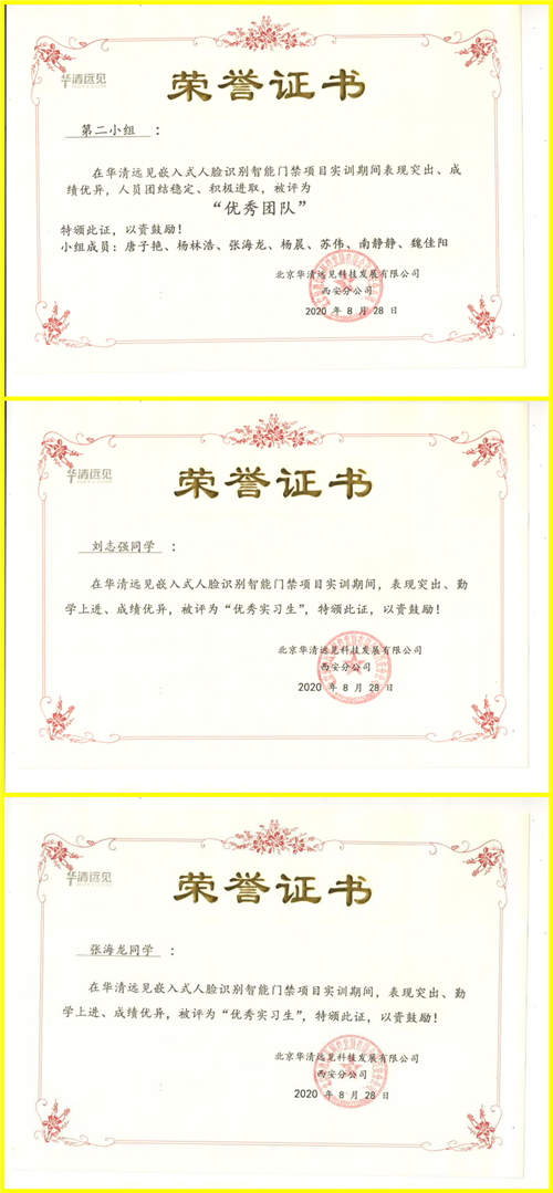 通過平時的表現和答辯成績,五名優秀學生和三組優秀項目小組表現突出、成績優異,獲得了了此次項目實訓的榮譽證書。在此,也希望參與本次實訓的所有學生都能有美好的前程。