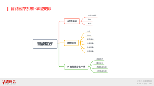 智能醫療實訓課程主要分三個部分:C語言基礎、硬件編程、Qt智能醫療客戶端。同學們通過C語言基礎的鞏固,可以對選擇與循環、函數和數組有更加深刻的認識,通過對硬件編程的了解,首次接觸到硬件相關編程,對具體模塊的組合和制作有初步了解,通過Qt的學習,可以對智能醫療項目的整體構造和細節部分有一定程度了解。