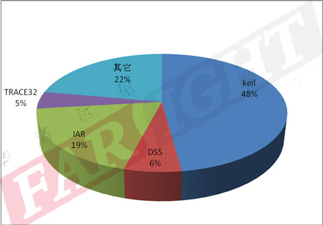 據(jù)2013-2014調(diào)查統(tǒng)計(jì)的數(shù)據(jù)結(jié)果顯示,keil和IAR分別以48%、19%的比例成為嵌入式開發(fā)者的主要調(diào)試工具,總計(jì)占所有參與調(diào)研人數(shù)的67%。合適的調(diào)試工具的選擇使用,可以大大加快產(chǎn)品的開發(fā)進(jìn)度。這也使得在調(diào)試工具層面的技術(shù)支持和發(fā)展成為研發(fā)過程中需要考慮的因素之一。同時(shí),這個(gè)調(diào)查結(jié)果也為初學(xué)者如何選擇開發(fā)工具提供有價(jià)值的參考。