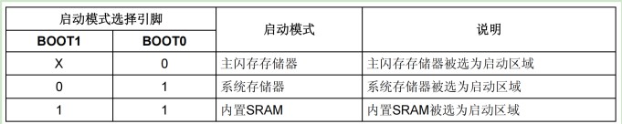 單片機可以通過設置BOOT0和BOOT1的引腳電平的高低來設置啟動方式。由STM32芯片參考手冊可知,BOOT0和BOOT1的電平高低和啟動方式的對應關系如下圖圖7所示。