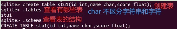 SQLite命令,以’ . ’作為開頭,例如.table查看有哪些表,.schema查看表的結構,這些命令主要在SQLite軟件中使用,如圖1-2以Linux系統所示: