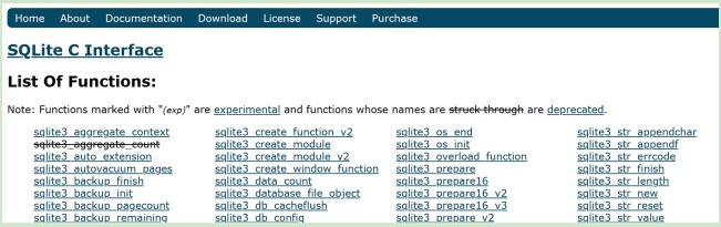 也可以在代碼中調用sqlite提供的API,如圖1-4所示,相關API接口可以參考sqlite官網:
