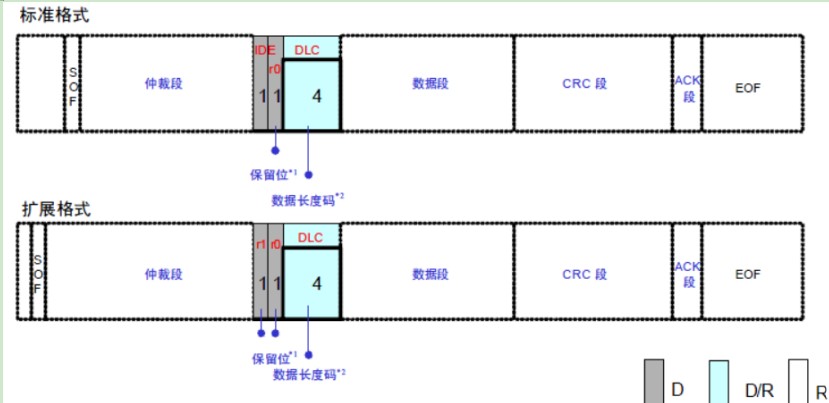 FDF(Flexible Data Rate Format):原CAN數據幀中的保留位r,FDF常為隱性,表示CAN FD 報文;