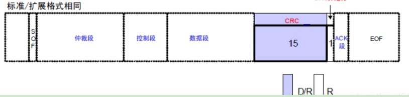 CAN的CRC的位數是15位,而在CAN FD中,CRC場擴展到了21位,如下: