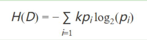 其中,H(D)是數(shù)據(jù)集 DD 的熵,pi是數(shù)據(jù)集 D中第 i類的概率,k 是類別的總數(shù)。