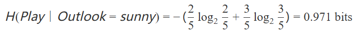 1. 對于Outlook=sunny,有5個實例,其中2個正例和3個負(fù)例: