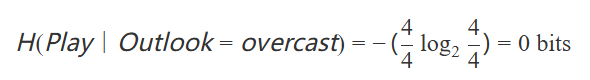 2. 對于Outlook=overcast,有4個實例,全部是正例: