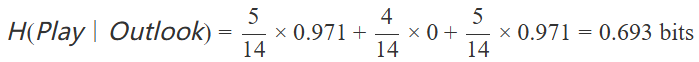 然后,我們計算劃分后的信息總量,即加權(quán)平均信息熵: