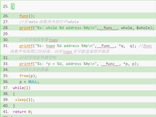 由測試代碼可知雖然topo在func函數結束后在main程序還能打印,那是因為雖然釋放topo空間,但是這塊空間并沒有被占用,所以程序并沒有出錯。