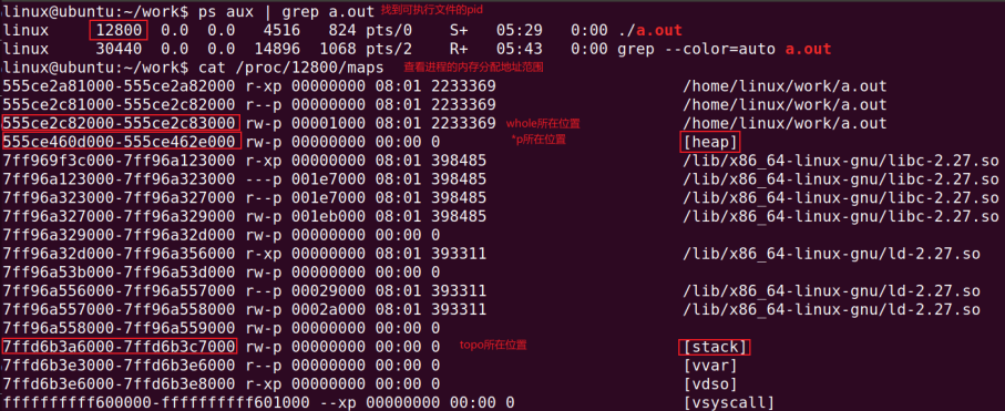 權限rw-p 表示可讀可寫,這塊有說明是heap堆區,由程序員進行分配回收