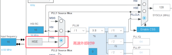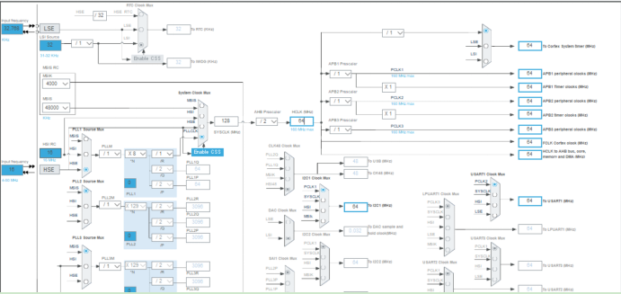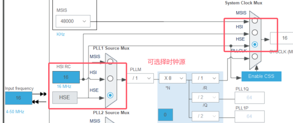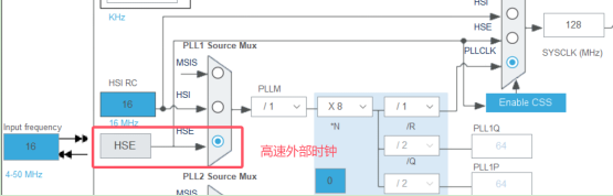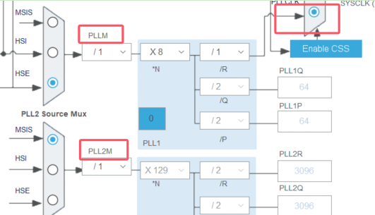 2. 配置 PLL:如果需要更高的系統(tǒng)時(shí)鐘頻率,可以啟用 PLL,將輸入時(shí)鐘倍頻后輸出到系統(tǒng)時(shí)鐘。