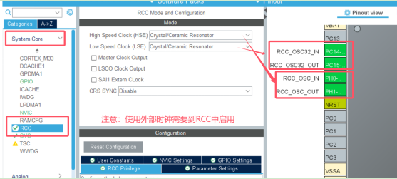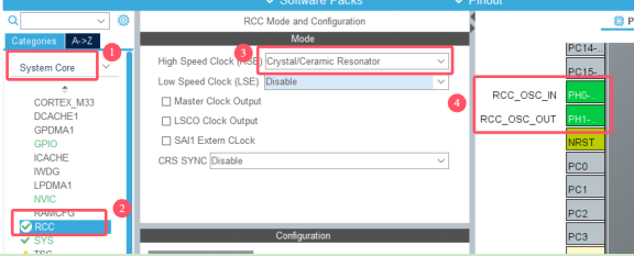 1. 選擇時(shí)鐘源:選擇使用外部晶體振蕩器或內(nèi)部時(shí)鐘源。可以通過配置 RCC(時(shí)鐘控制寄存器)來選擇。