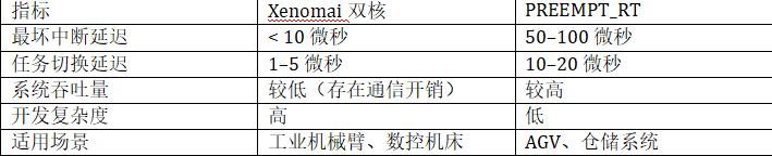 混合方案建議:結合使用Xenomai處理關鍵實時任務,同時使用PREEMPT_RT優化Linux域
