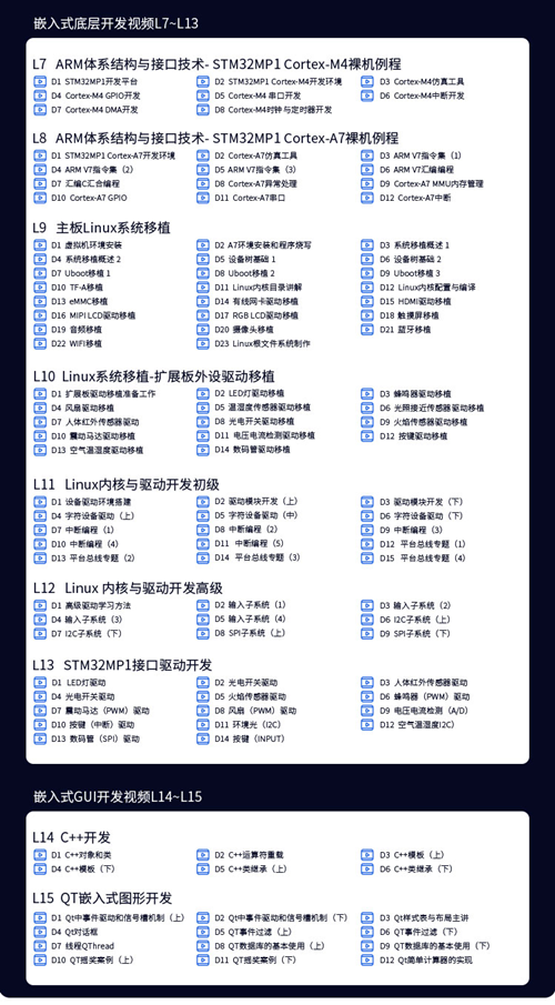 STM32MP157開發板(FS-MP1A)配套視頻課程一覽: