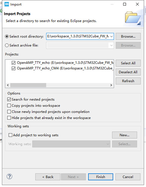 瀏覽目錄選擇工程O(píng)penAMP_ TTY _echo,光盤路徑為: