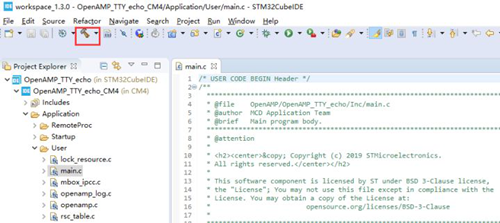 選擇項(xiàng)目OpenAMP_ TTY _echo_CM4并單擊Build按鈕