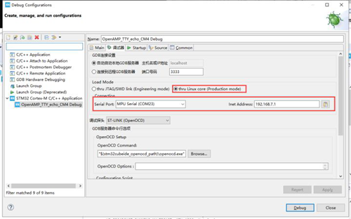 調(diào)試器 下選擇thru Linux core(Production mode)
