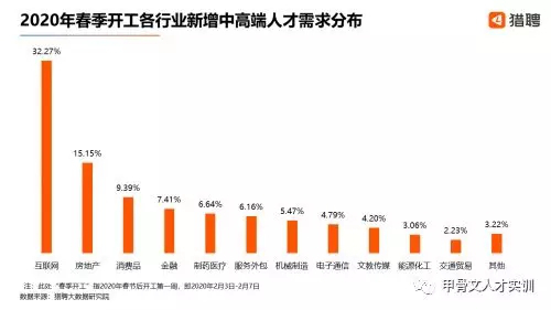 2月12日,獵聘今日發(fā)布《疫情下2020中高端人才開(kāi)工大數(shù)據(jù)報(bào)告》顯示, 2020年春季開(kāi)工互聯(lián)網(wǎng)行業(yè)用人需求新增超30%,成為新增人才需求最大的行業(yè)。